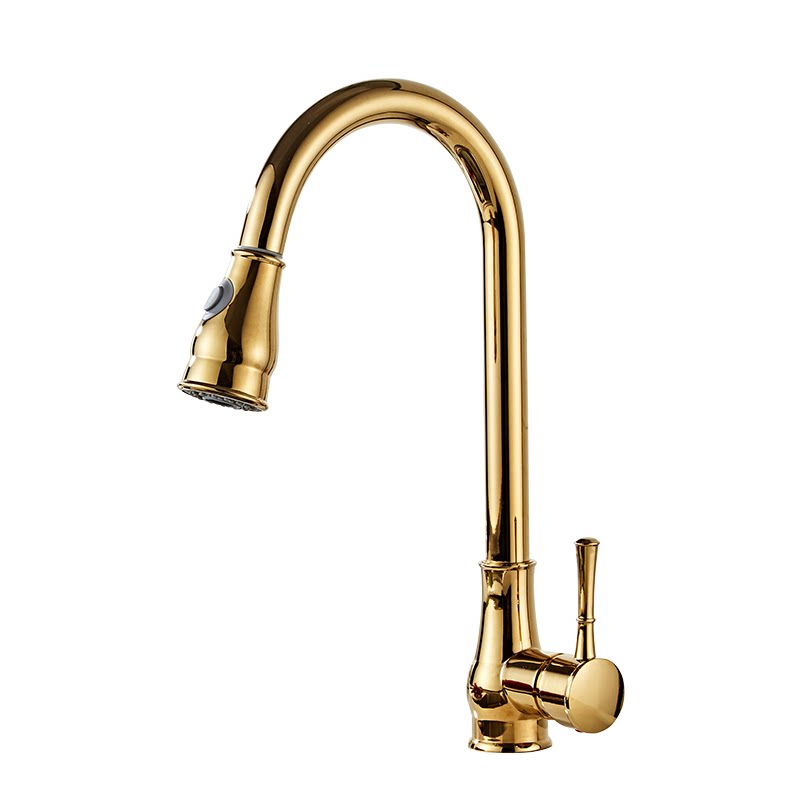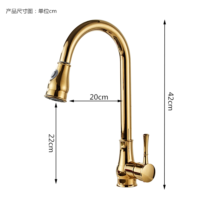 Kitchen pull-out cold and hot tap gold wash basin full copper retraction rotation dishwasher sink household splash