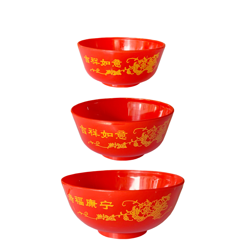 Wedding supplies Wedding happy bowl to bowl Red festive bowl set Chinese retro dragon and phoenix plastic bowl Sweet soup bowl
