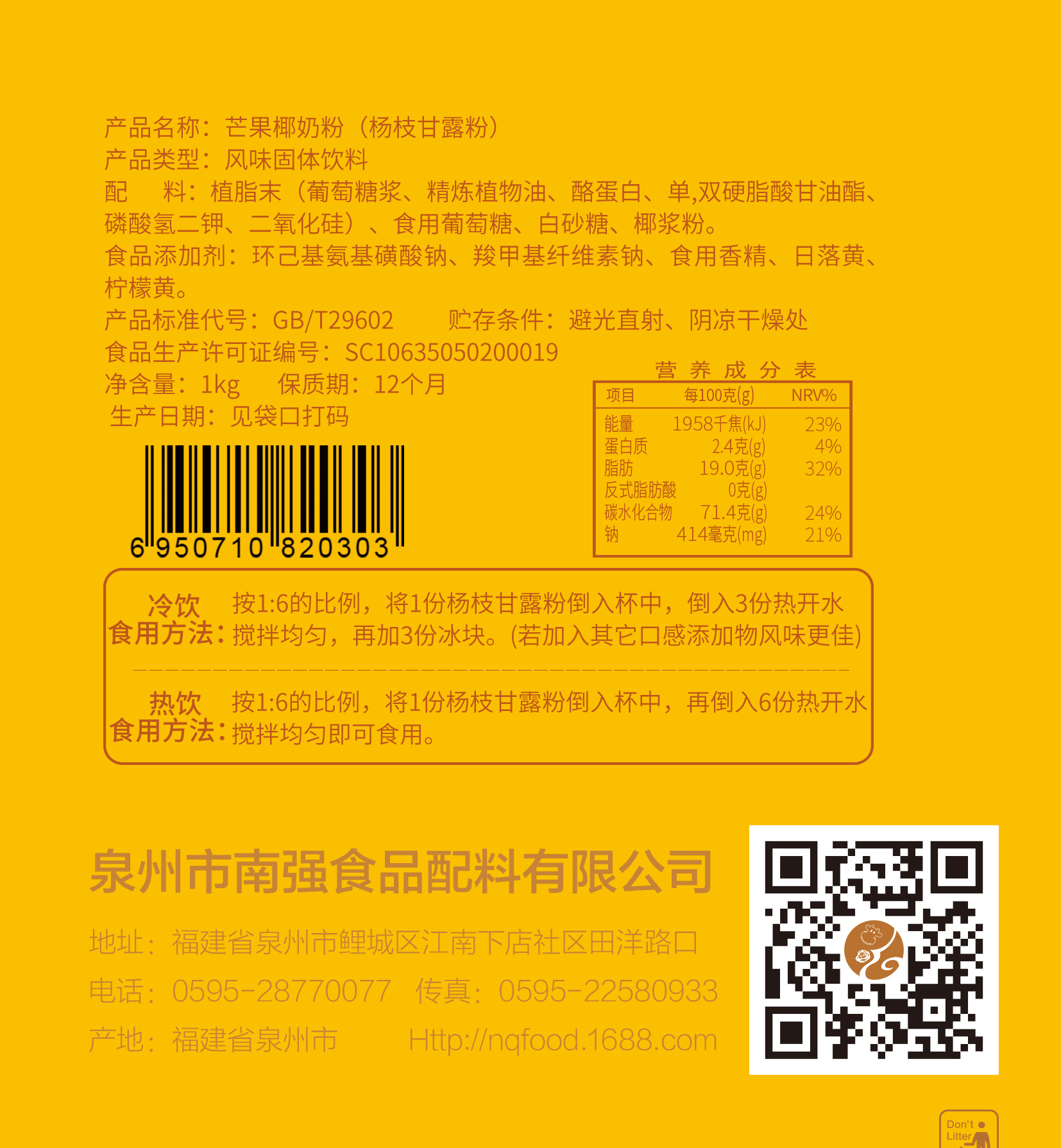 1kg instant poplar nectar powder commercial mango coconut milk powder milk tea shop raw material brewing drink ice rose Hong Kong style