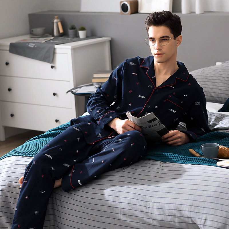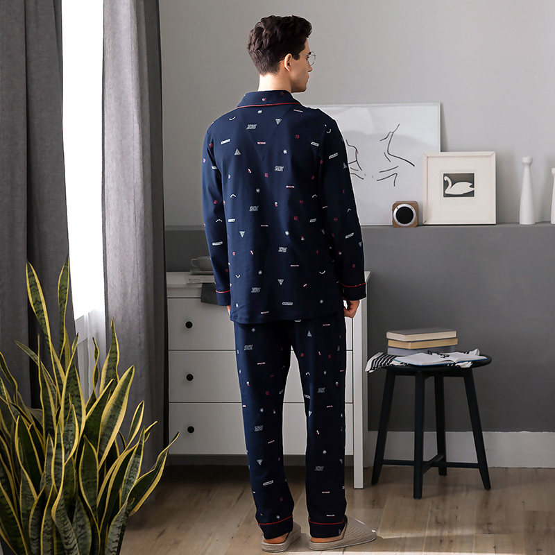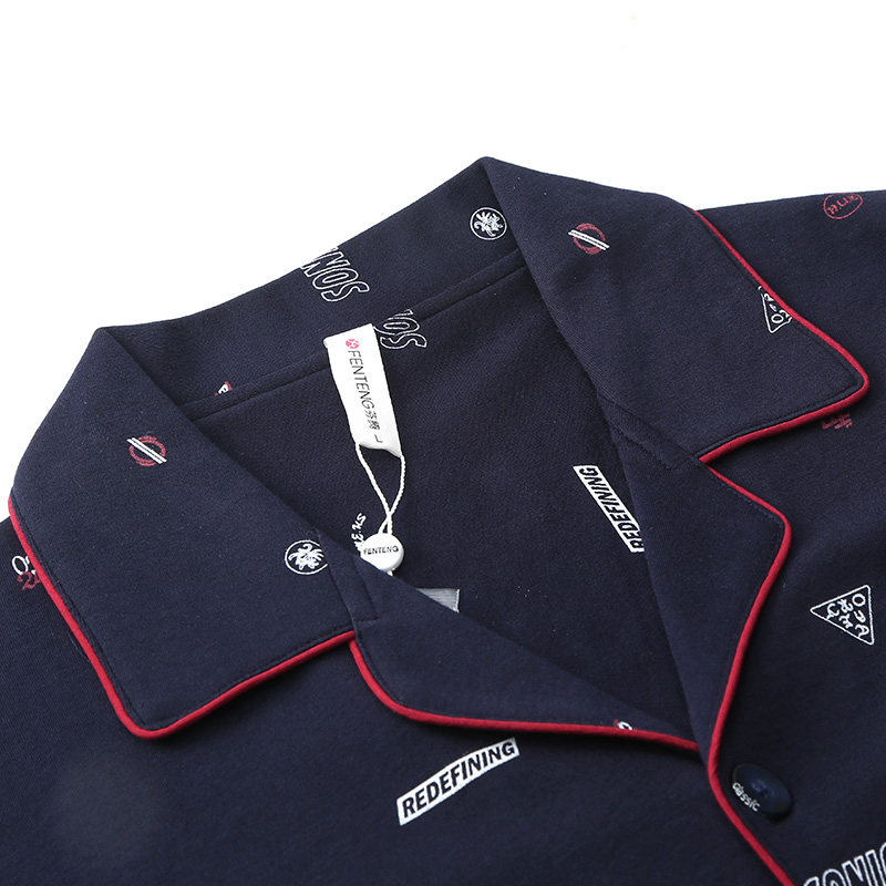Fenteng Spring Autumn Season Pyjamas men's long sleeves Pure cotton Korean version Leisure thin All cotton increased code loose Home Residence Suit Suit