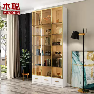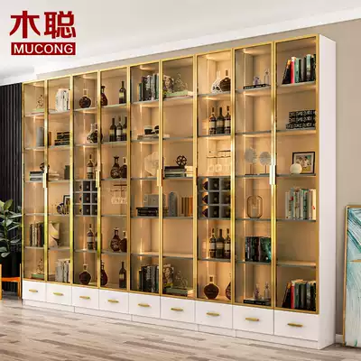 Modern light luxury glass door bookcase wine cabinet storage cabinet living room display cabinet wall solid wood customization