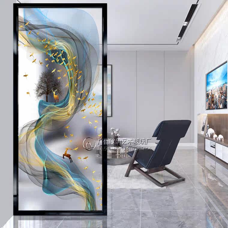 Custom Modern Minimalist Art Glass Living Room Screen Bedroom Partition Bedroom Partition Dry Wet Separation Into The House Xuanguan Frosted Light Transmission