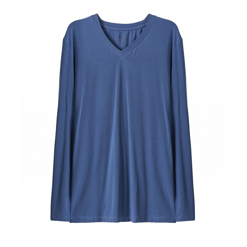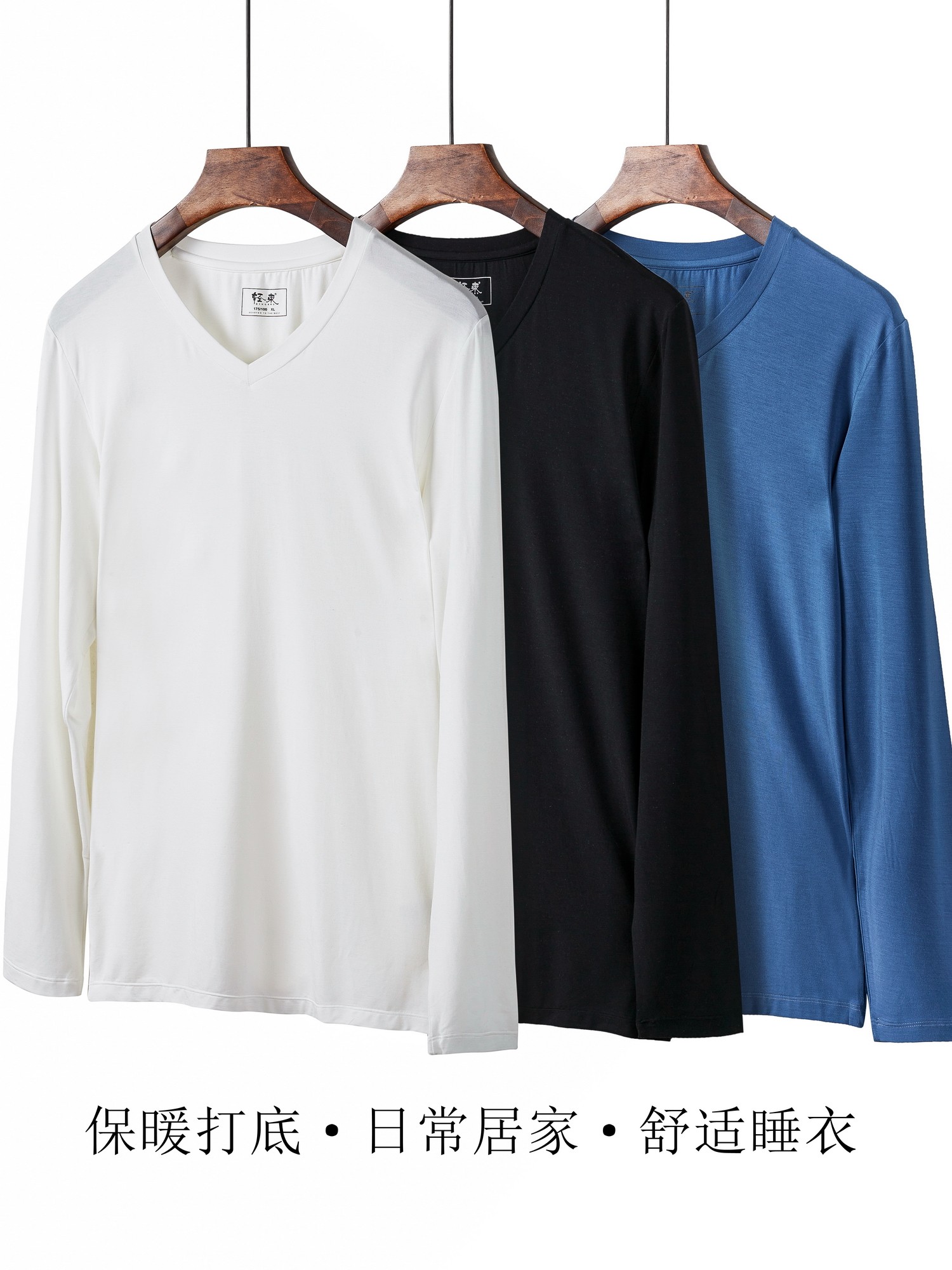 Light beam 80S ultra-fine modal men's V-neck thermal top thin bottoming shirt seamless basic underwear winter