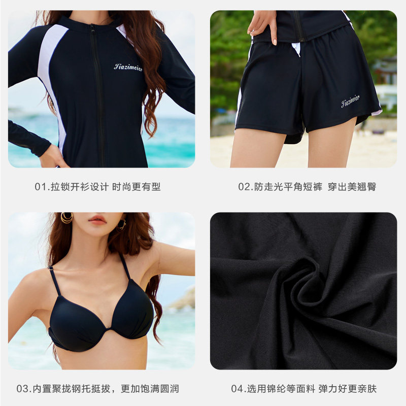 Long sleeve swimsuit female steel entrusted with two style flat angle trousers five pieces of sunscreen speed dry black display slim hot spring swimsuit diving