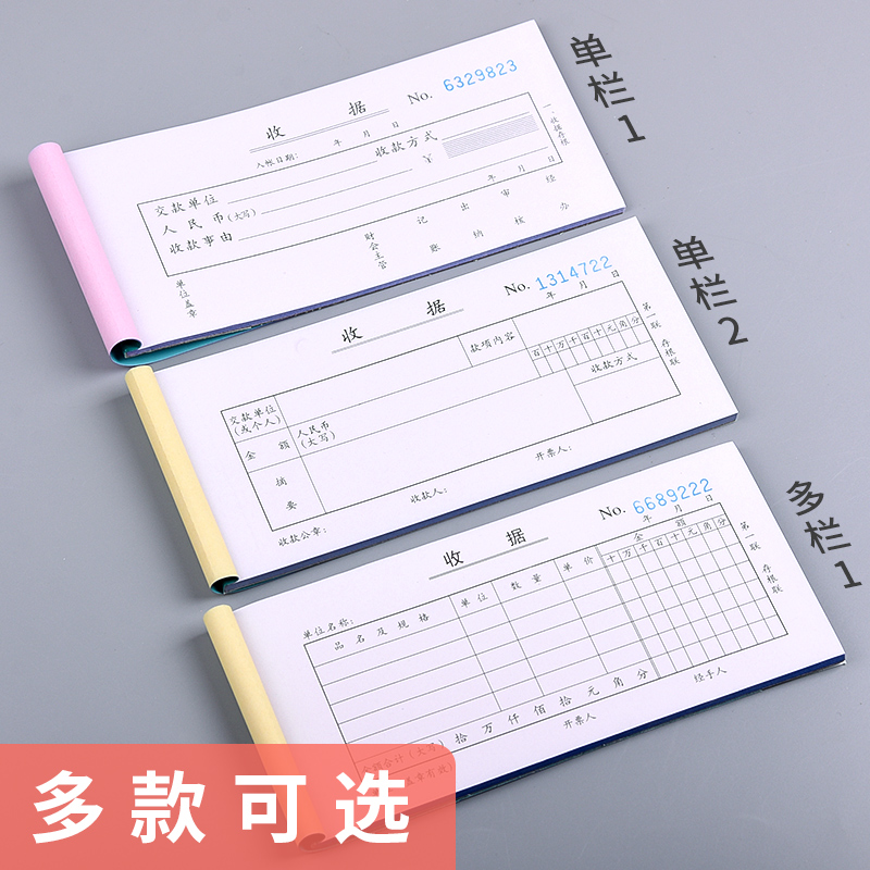 20 copies of the three-way single column collection receipts two-way multi-joint receipt of the receipt of the non-carbon copy of the single-book two-piece bill receipt financial accounting office supplies