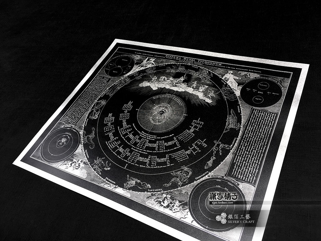 Solar system stars, planets, celestial bodies, orbiting systems, cosmic constellations, gold and silver foil wall charts, posters, decorative paintings