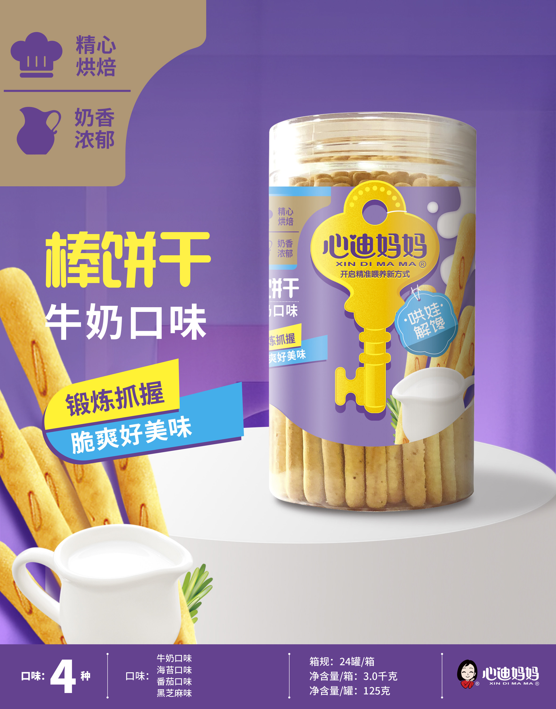 Xindi mother stick biscuit 4 cans delicious combination 3-year-old baby healthy nutrition snack flavor optional