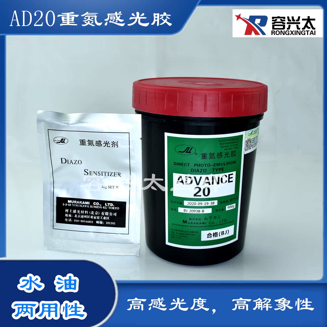 Xinping village AD 20 heavy nitrogen photosensitive sensitive silk printing screen oil dual - use sunburn sensor slurry