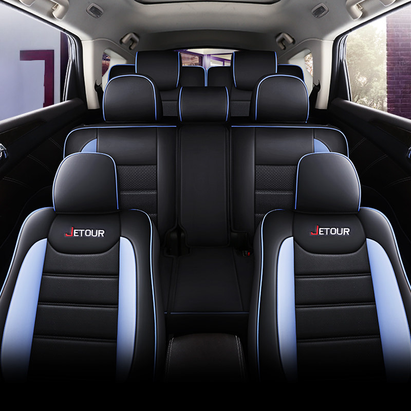 5 seats black and blue full leather--standard version 5 seats black and blue full leather--deluxe version 5 seats black and blue full leather--cartoon version 5 seats black and red full leather--standard version 5 seats black and red full leather- -Deluxe Edition