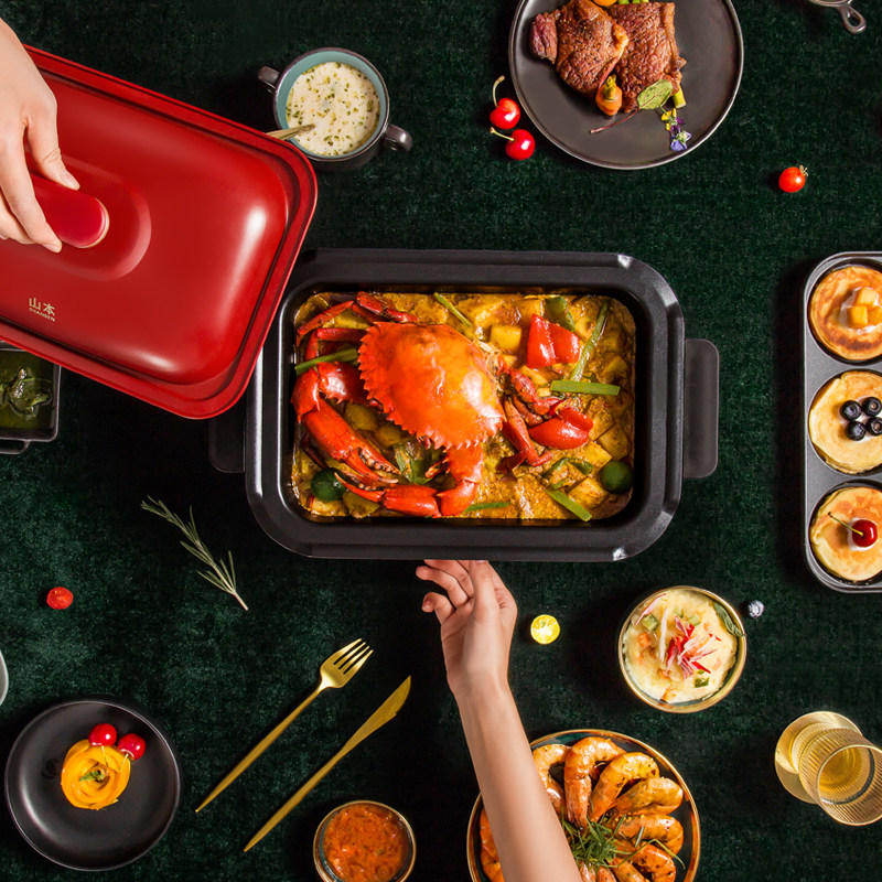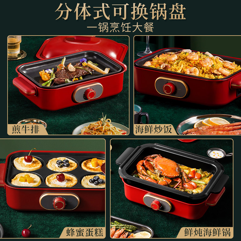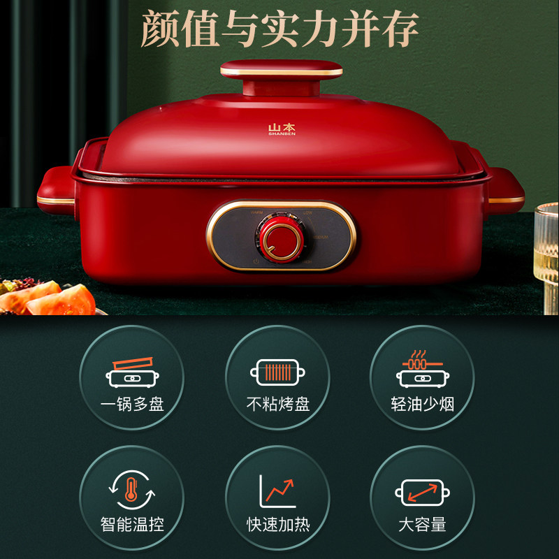 Yamamoto multi-functional cooking pot home breakfast barbecue hot pot barbecue all-in-one machine net red Korean style frying pan electric grill