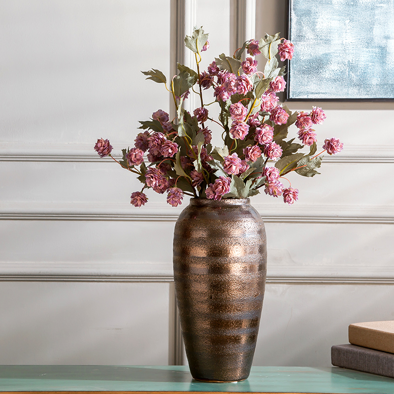 Jingdezhen Ceramic Vase Ornament Household European-style Living Room Creative Dried Flowers Fake Flowers Simulation Flower Arrangement Modern Simple