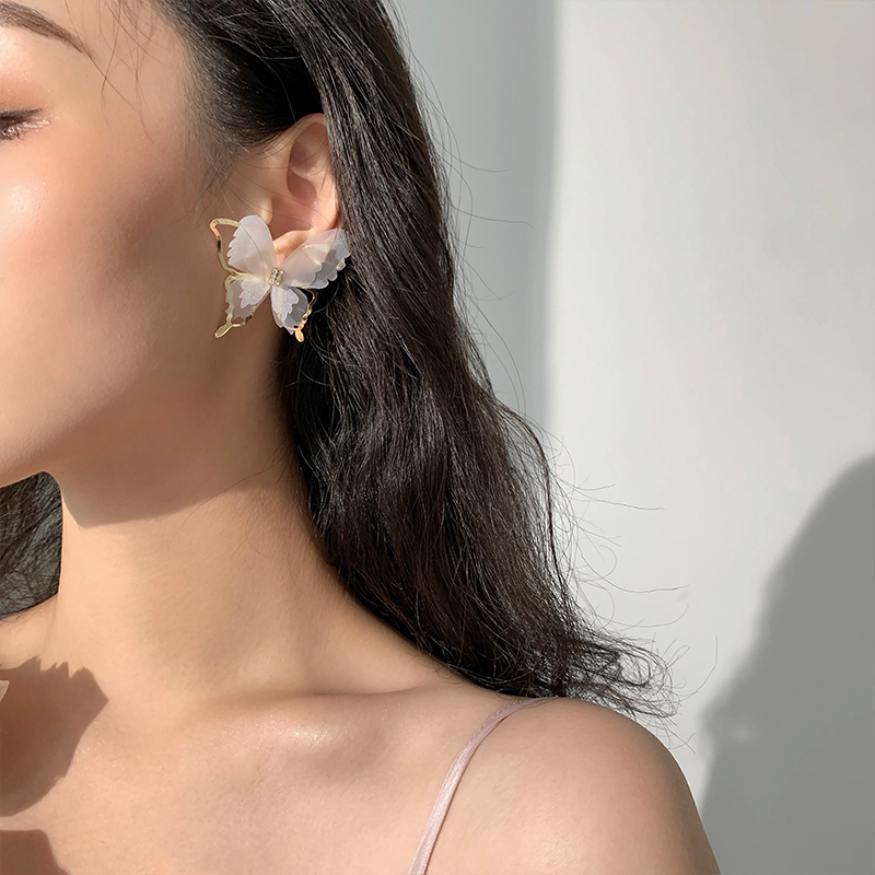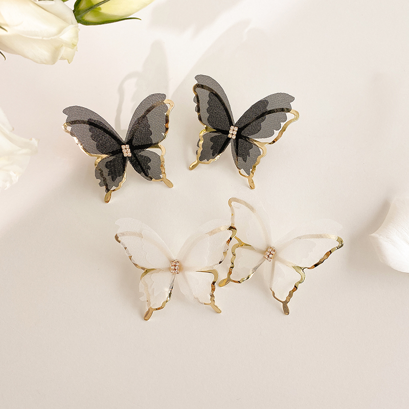 Mori line gauze design sense earrings feminine web celebrity exaggerated earrings 2021 new fashion earrings S925 silver needles