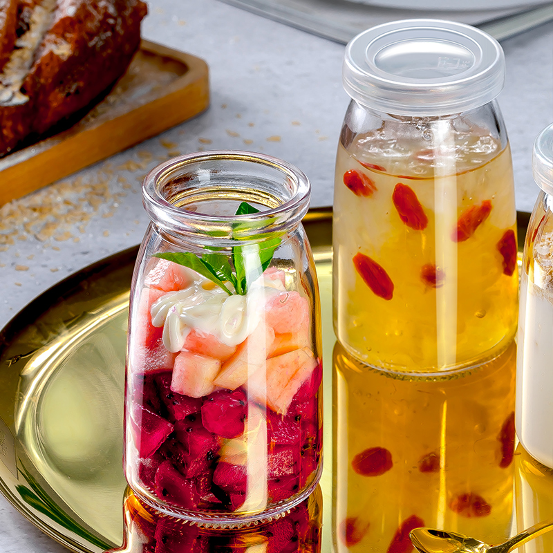 Small glass bottle seal canister with lid for household transparent small band portable food grade jam silver ear bird nest packing bottle