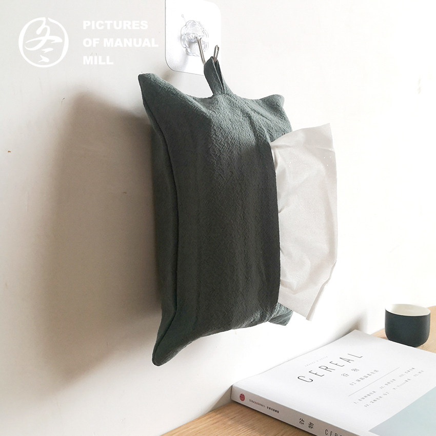 Japanese simple cotton linen fabric tissue cover wall-mounted tissue bag removable toilet paper storage tissue box car living room home