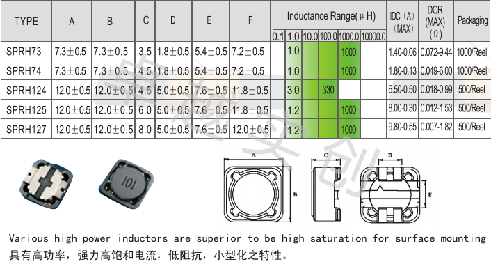 SMD power inductor CDRH73R 74R 104R 105R 124 125 127 129 1UH-2 2MH