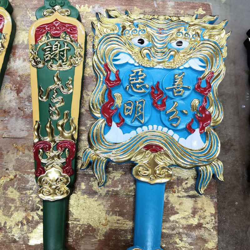 Sophomore Bouru Hand hands Xie Fan made gold on Taiping High - grade Wooden sculpture