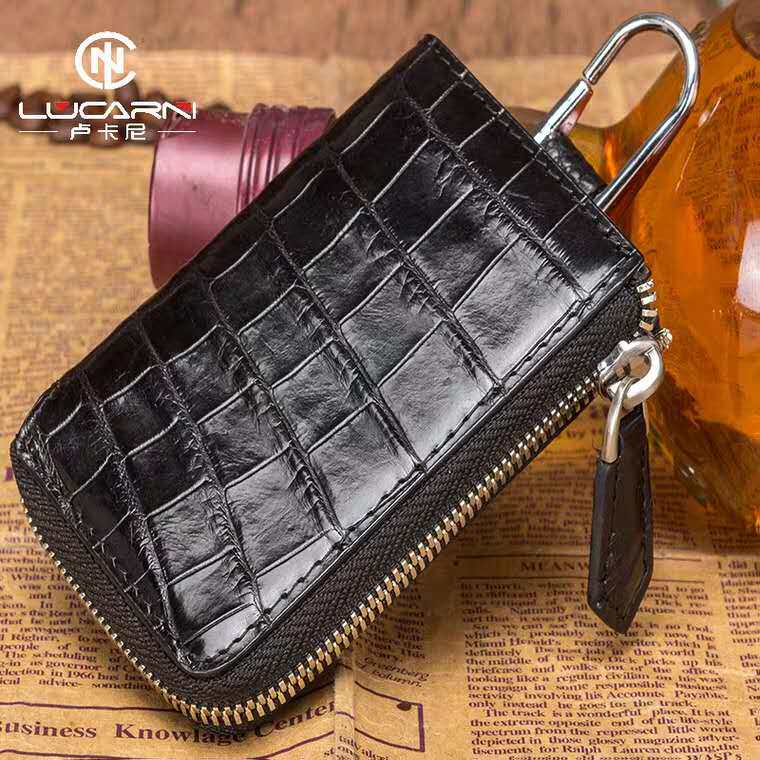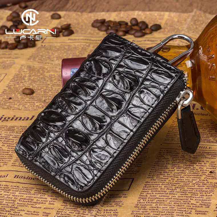 Crocodile leather key bag men's multi-functional large-capacity home simple leather waist pad lock key bag key set keychain