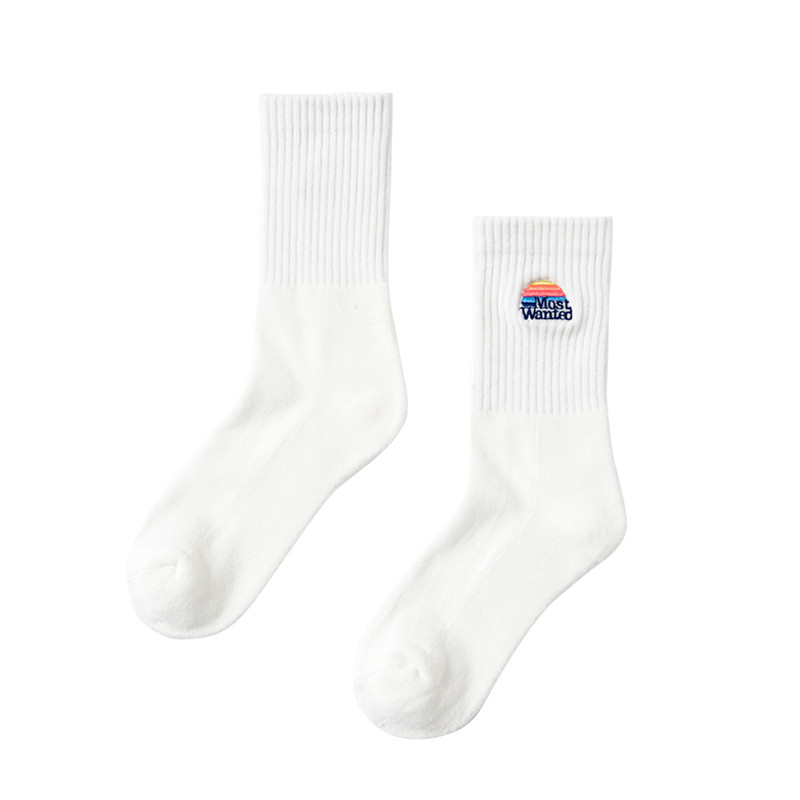 MOSTWANTEDLAB male and female couples hip-hop tide brand rainbow embroidery LOGO mid-tube stockings breathable sports socks