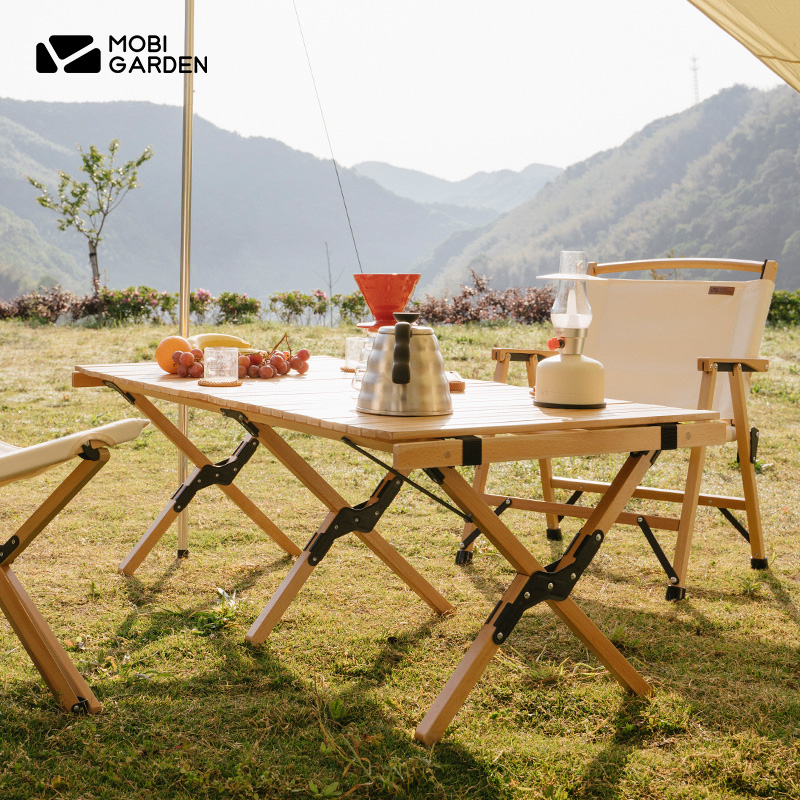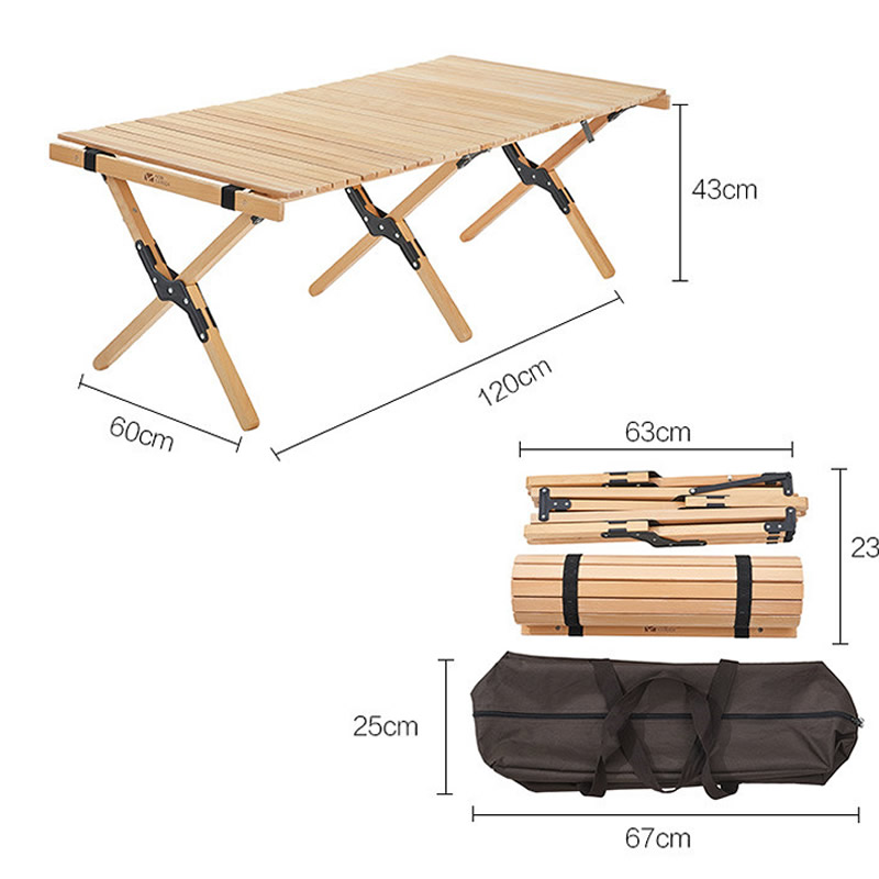 Campaign Outdoor Egg Roll Table Portable Folding Table Camper with Self-Driving Solid Wood BBQ Table