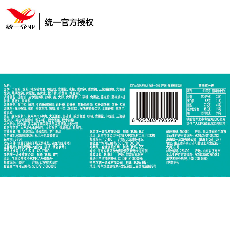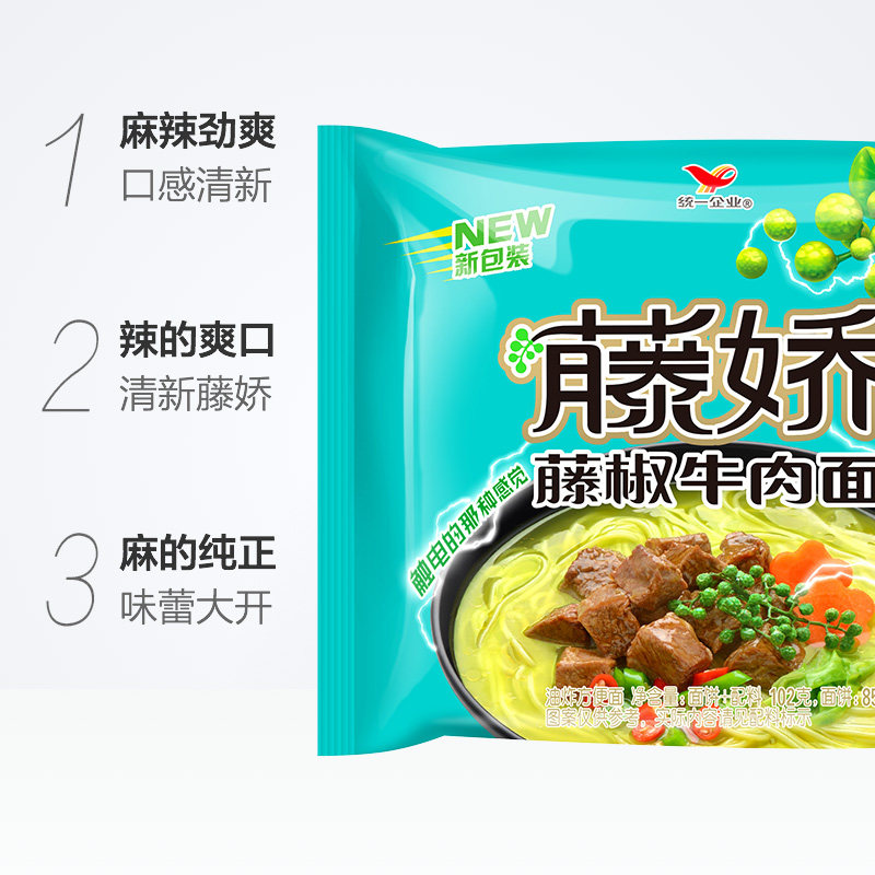 Unified Instant Noodles Rattan Jiao Rattan Pepper Beef Noodle Bag 5-in-10 packs Electric shock Pepper Hemp Instant Five-in-1 instant noodles