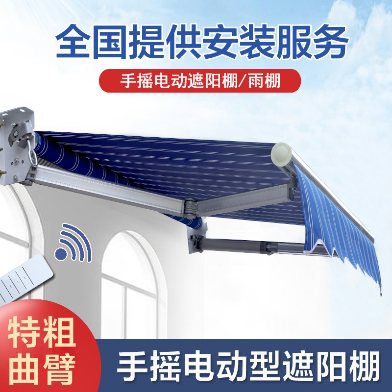 Electric shading shed RMB498 < Dua motor > Rain shed special custom size reinforcement (close by wall 2 m telescopic 1 5 m) 2 arms reinforcement (by wall 3 m telescopic 1 5 m) 2