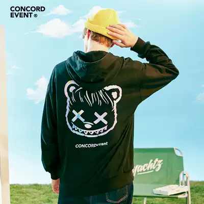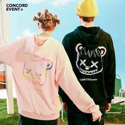 CONCORDEVENT couple thick T-shirt men Spring and Autumn hooded print bear country Tide brand bf loose hip hop hoodie