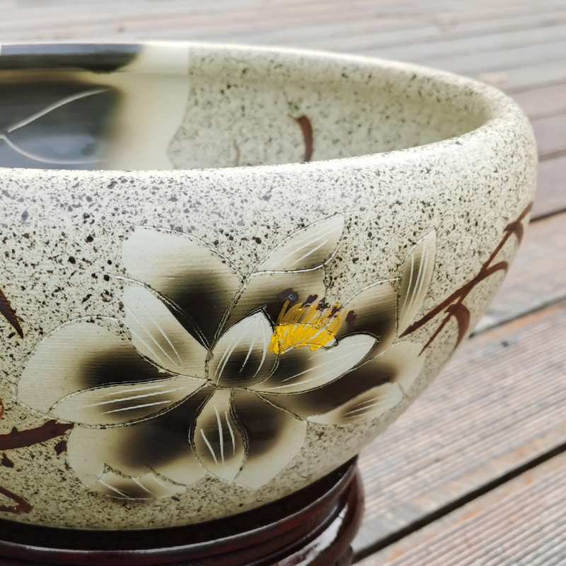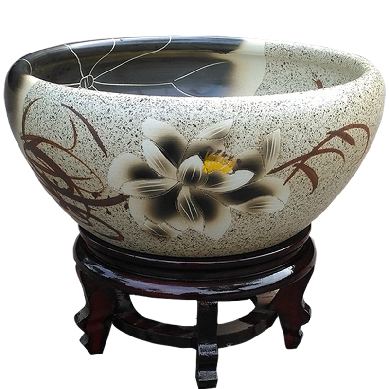 Ceramic flower water lily tank hand-drillable succulent pot goldfish tank lotus lotus pot turtle tank home hydroponic pot