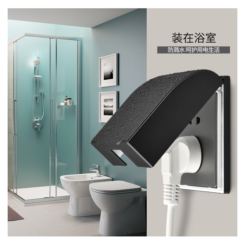Type 86 Switch Socket Waterproof Case Protection Cover Black Splash Box Bathroom Makeup Room Waterproof Hood Home