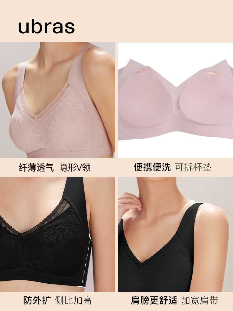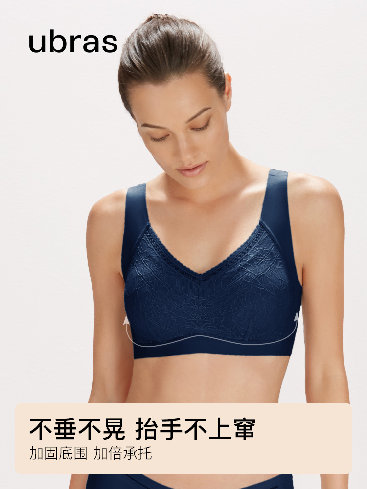 ubras Iris Tail Lace Big Code Back Hook Bra Comfort No Steel Ring Big Chest Display Small Bra Underwear Woman