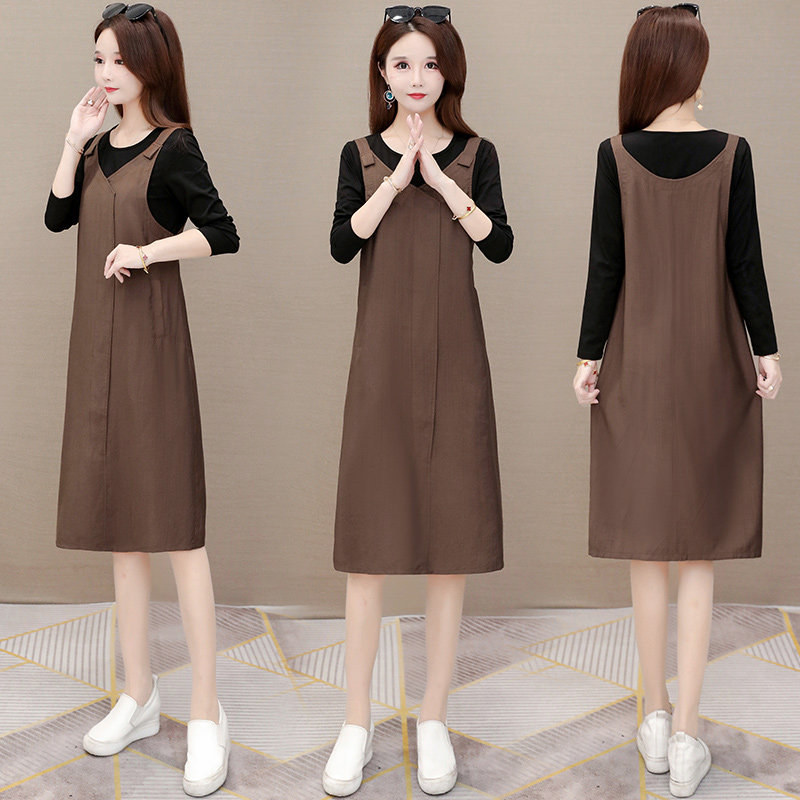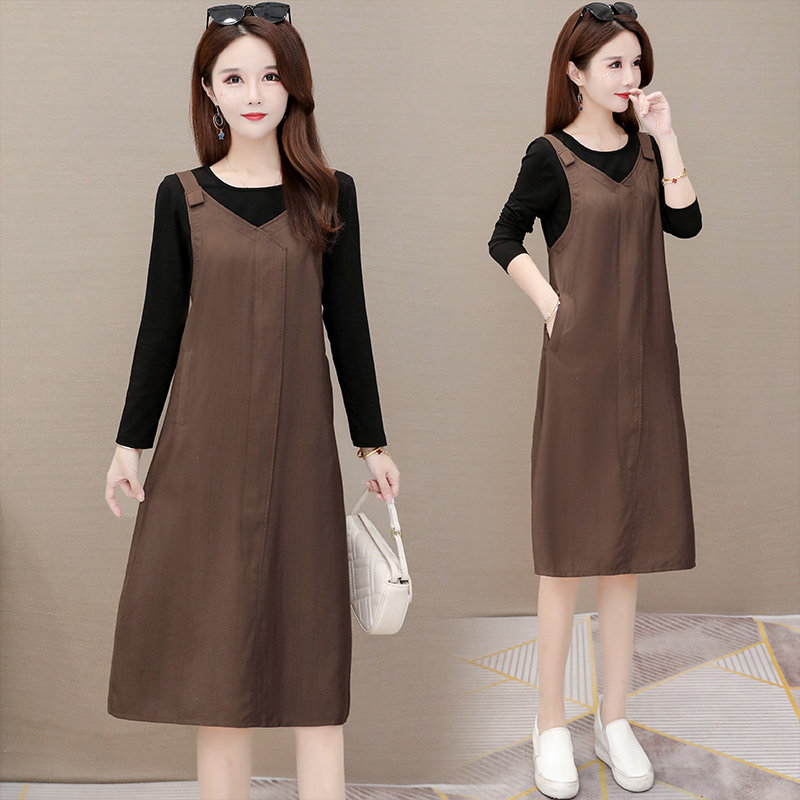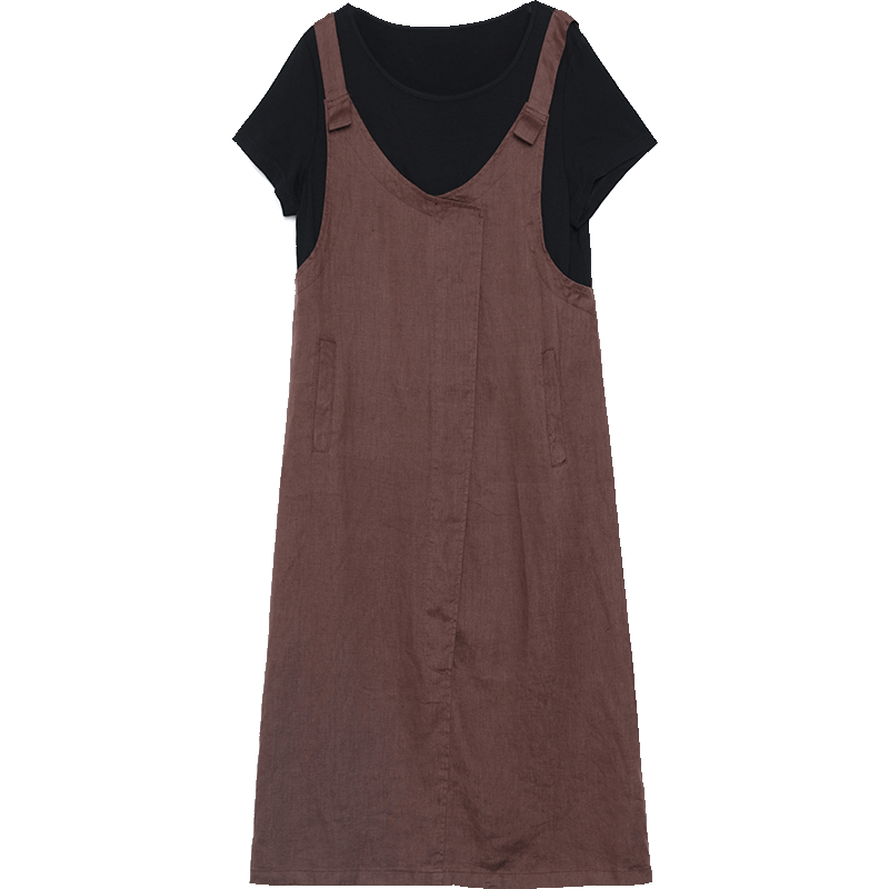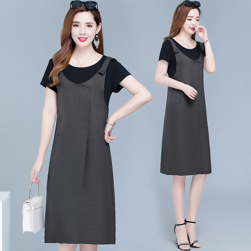 Fake two cuddling bags harness cotton linen dress women 2022 Summer new linen casual cover moms long dresses