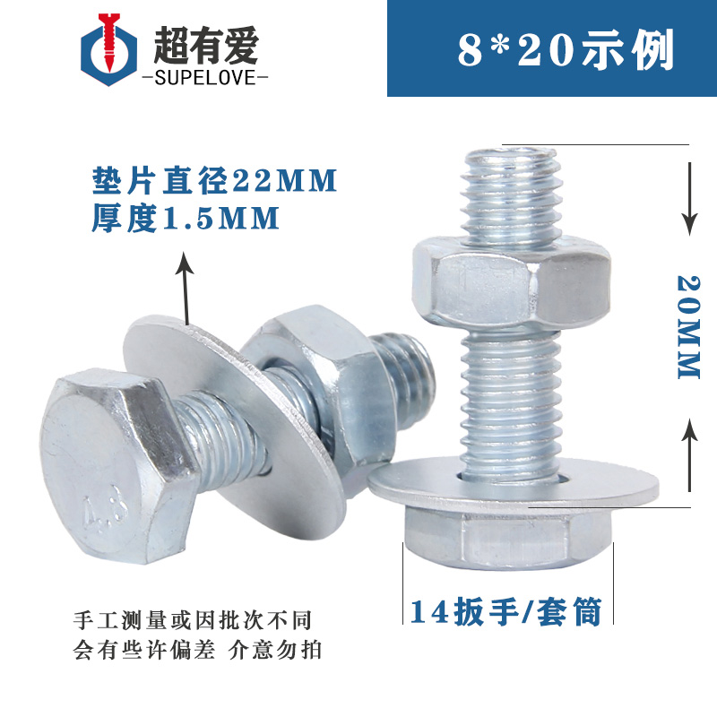 Loose no assembly mind discrepted with caution 10 sets 8 * 20 bolted one cap (100 sets) 8 * 20 bollards one mother one flat (100 sets) 8 * 20 bollards a mother double flat (1