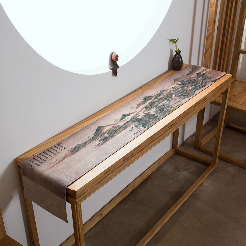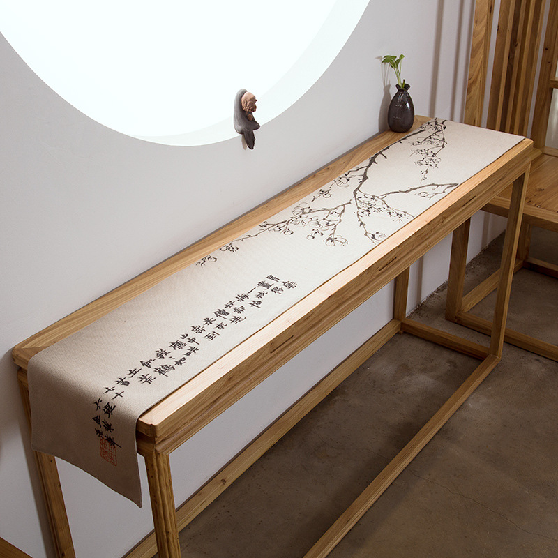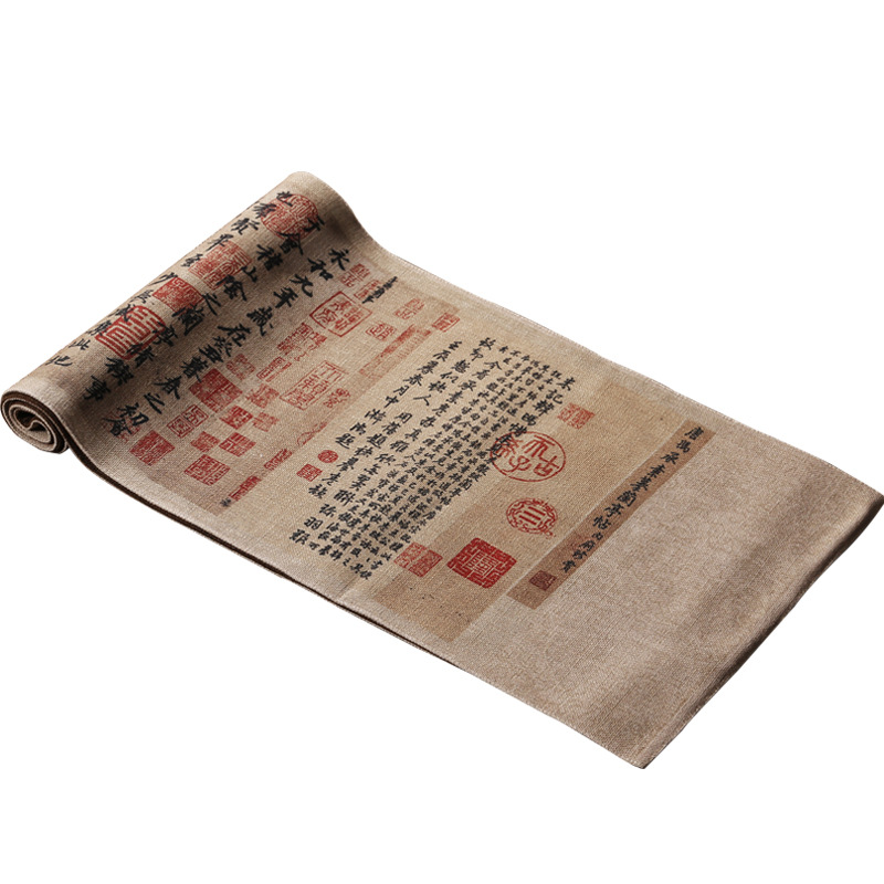 Zen Intention Hand Painted Hemp Cloth Tea Mat Table Flag Tea Track Zero Fit Chinese Linen Tea Cup Mat Tea Art Dry Foam Mat Tea Banner