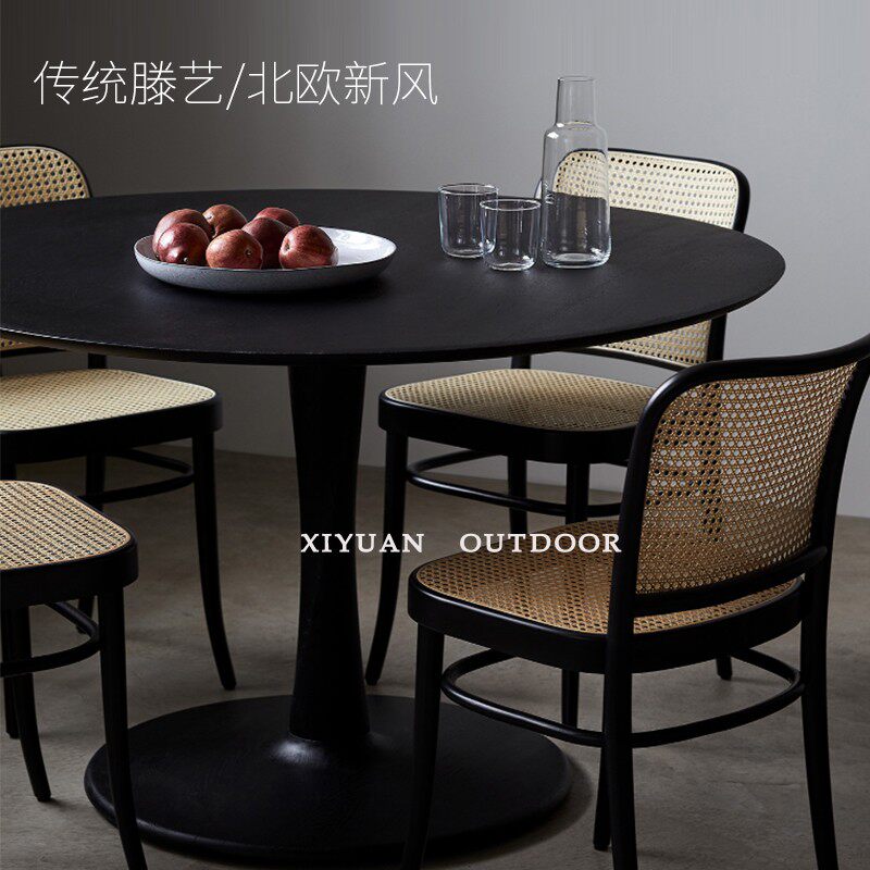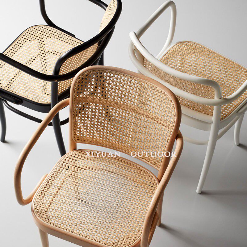 Rattan dining chair Solid wood Nordic retro ins study room negotiation household makeup design dining room Japanese single rattan chair