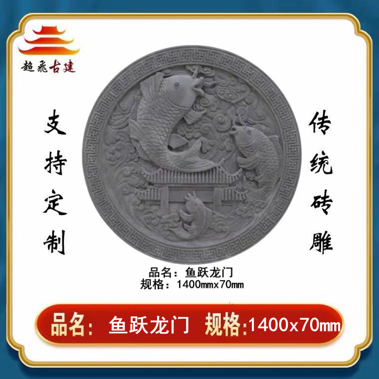 Circular brick sculpted ancient ancient quadraulic wall relief decoration hanging piece Chinese style tile dimensions
