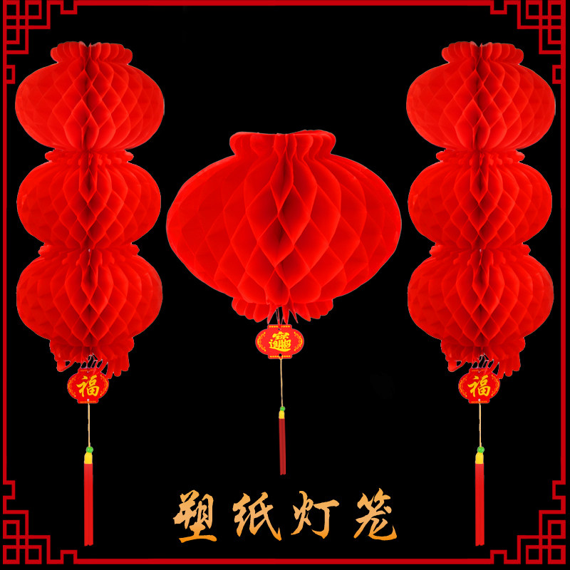Paper lanterns wedding festive small lanterns hanging ornaments anti-opening shopping malls decorative lanterns red honeycomb paper lanterns waterproof