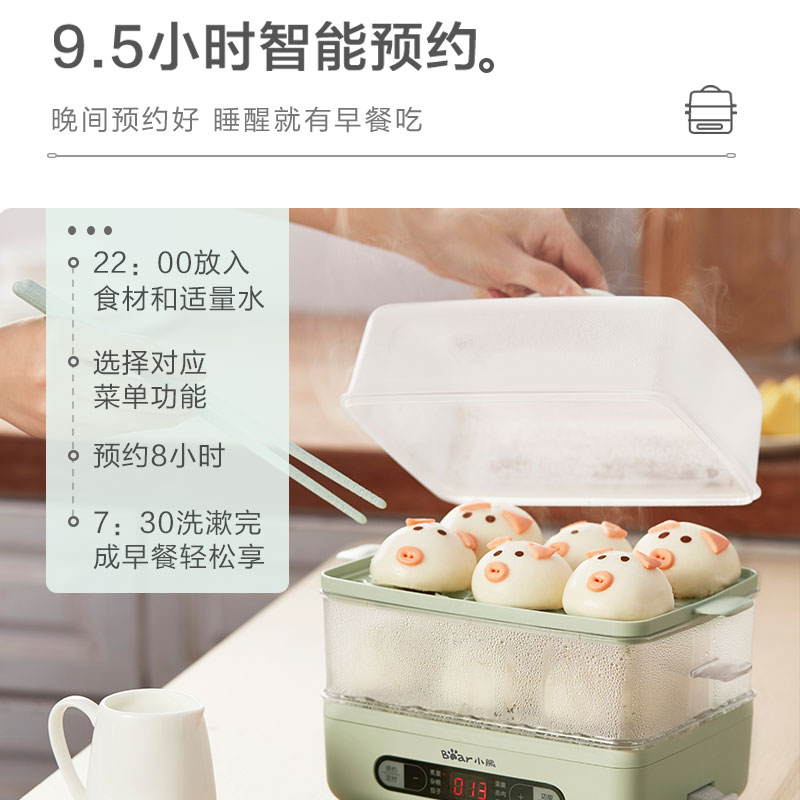 Small Bear Cook Egg-Egg Steamer Double Layer Timing Automatic Power Cut Home Small Chicken Egg Spoon Deity Breakfast Machine