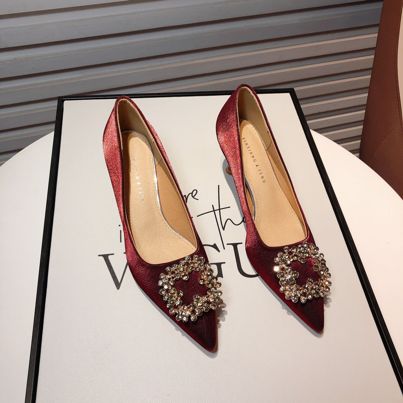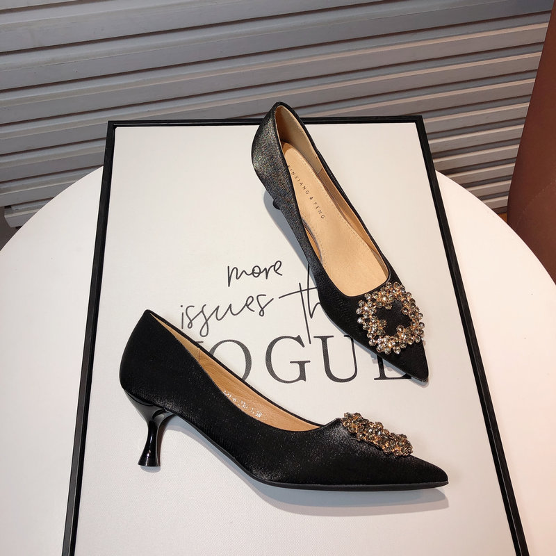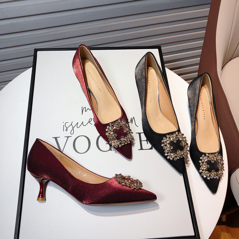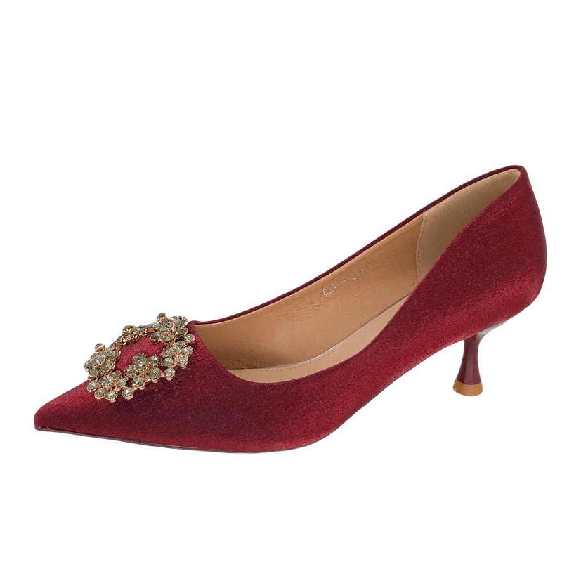 Fashion ladies rhinestone square buckle satin stiletto dress wedding shoes women's 2022 autumn new sexy mid-heel bag shoes