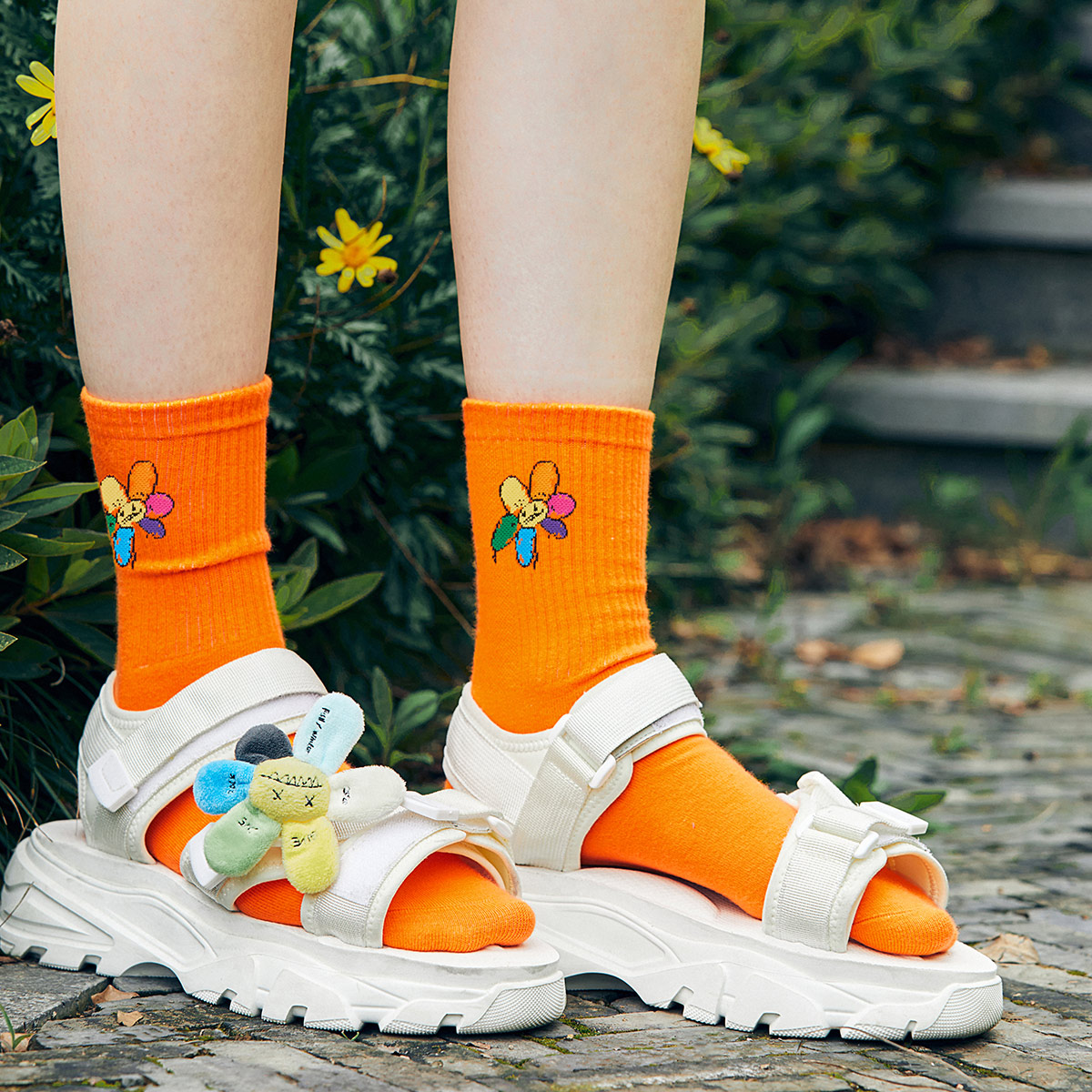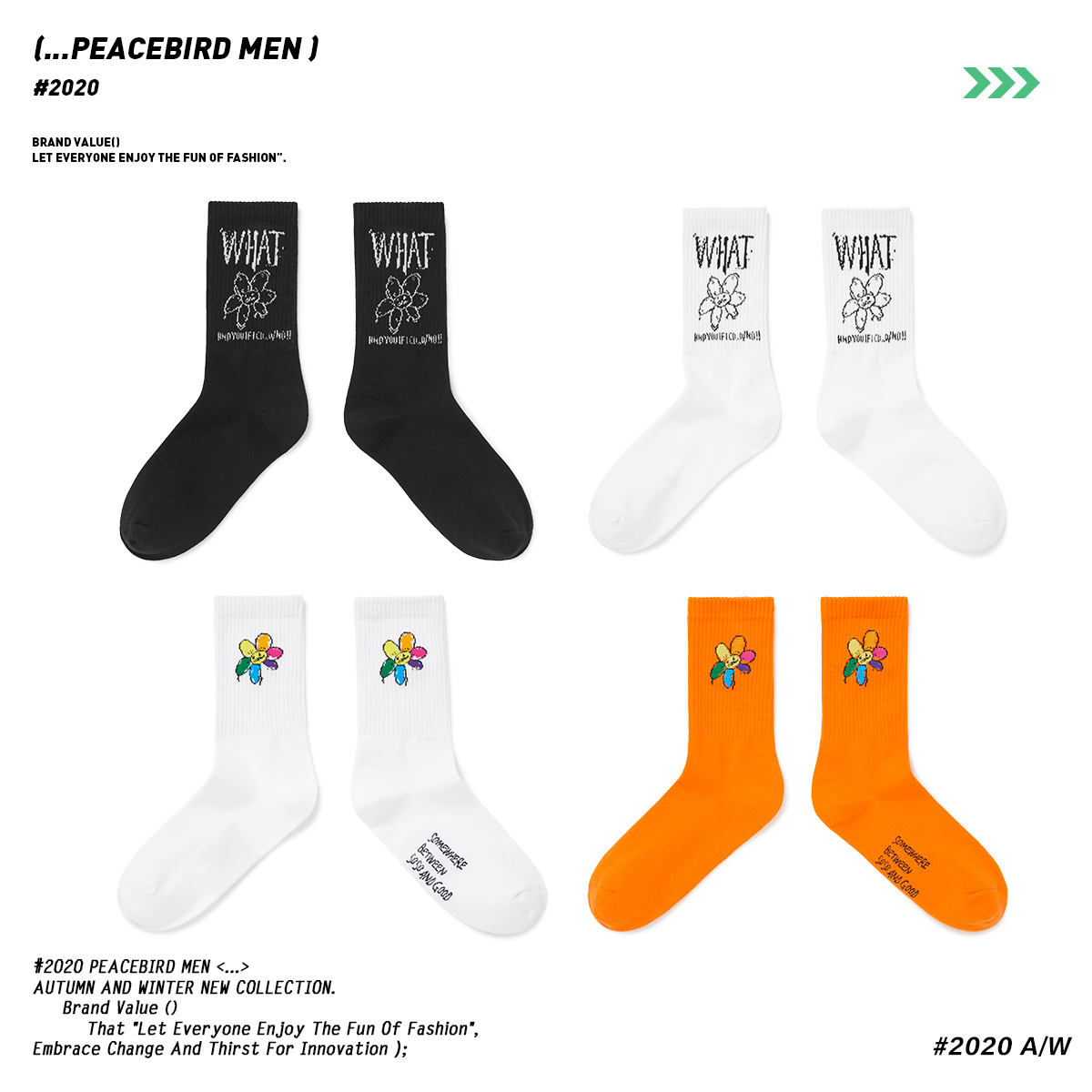 Peacebird men's sports hand-painted flower sports warm socks Early autumn Korean version of the trend of comfortable breathable socks