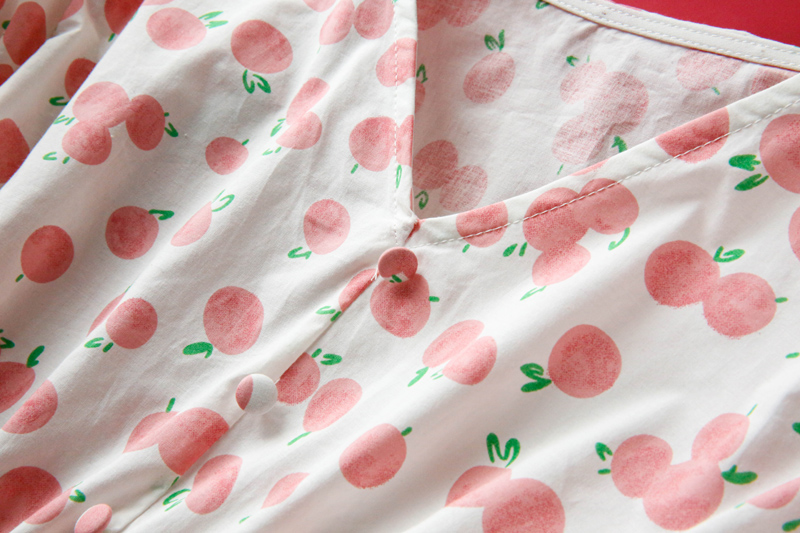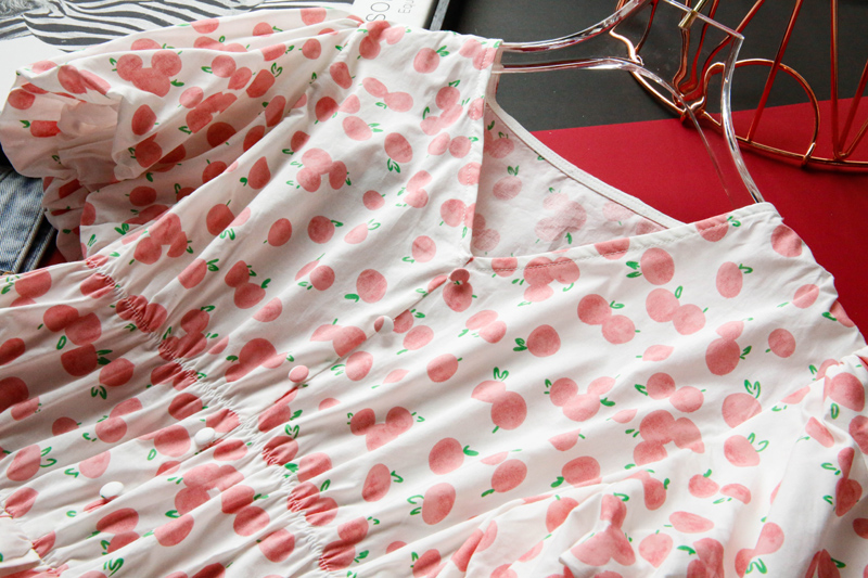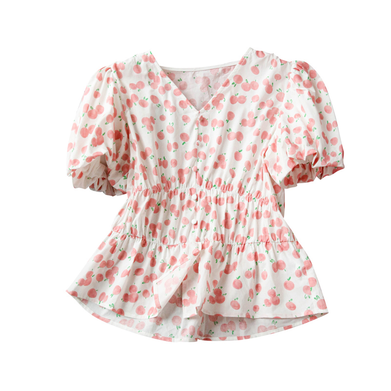 Rice Home Good quality earthly water Honey peach French style retro reduction age cute V Collar Foam with waist printed blouses