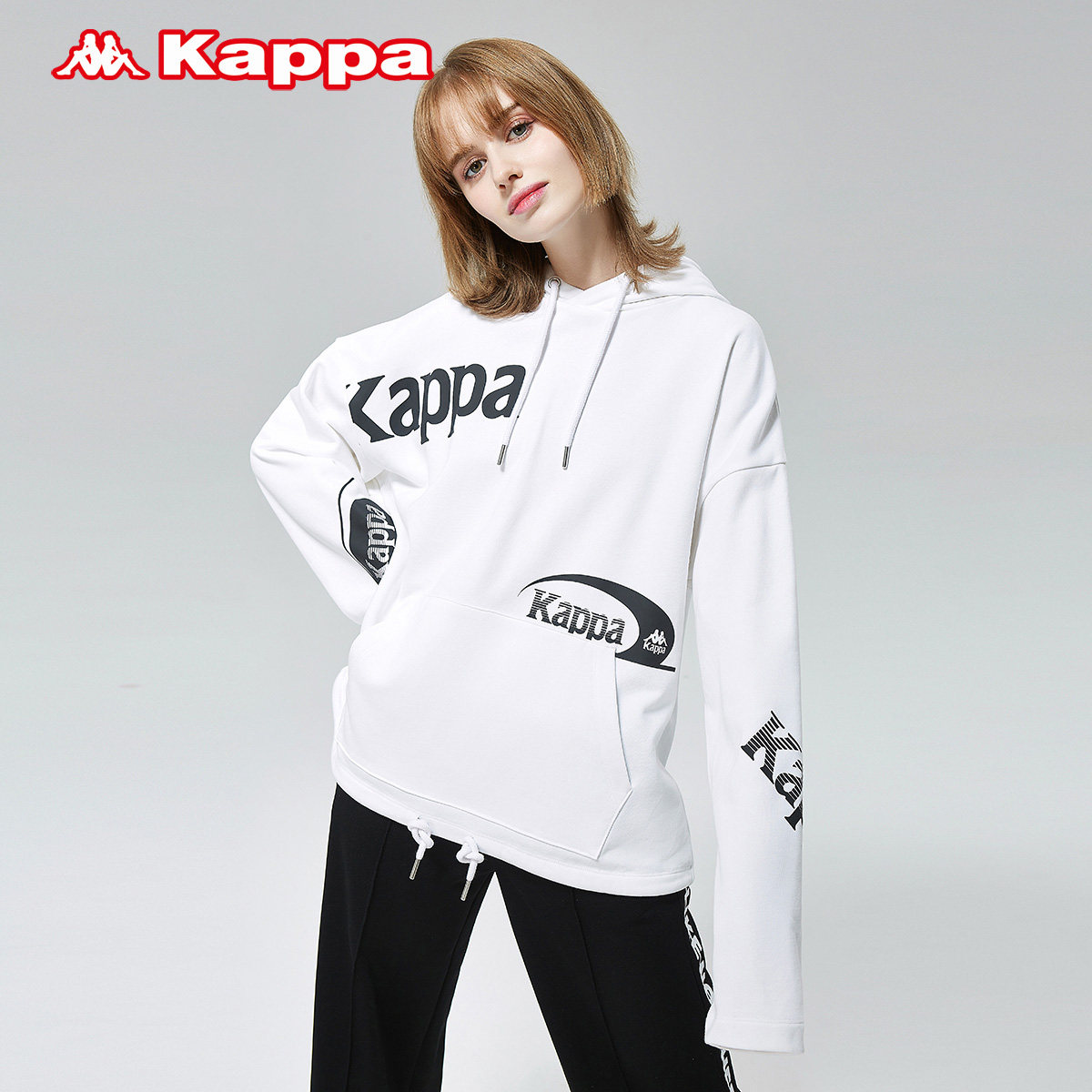 Kappa Capa Falling Shoulder Sweatshirt Woman Sports Jacket Letter Printed Covering Head Hooded Sweatshirt Loose Long Sleeve Blouse