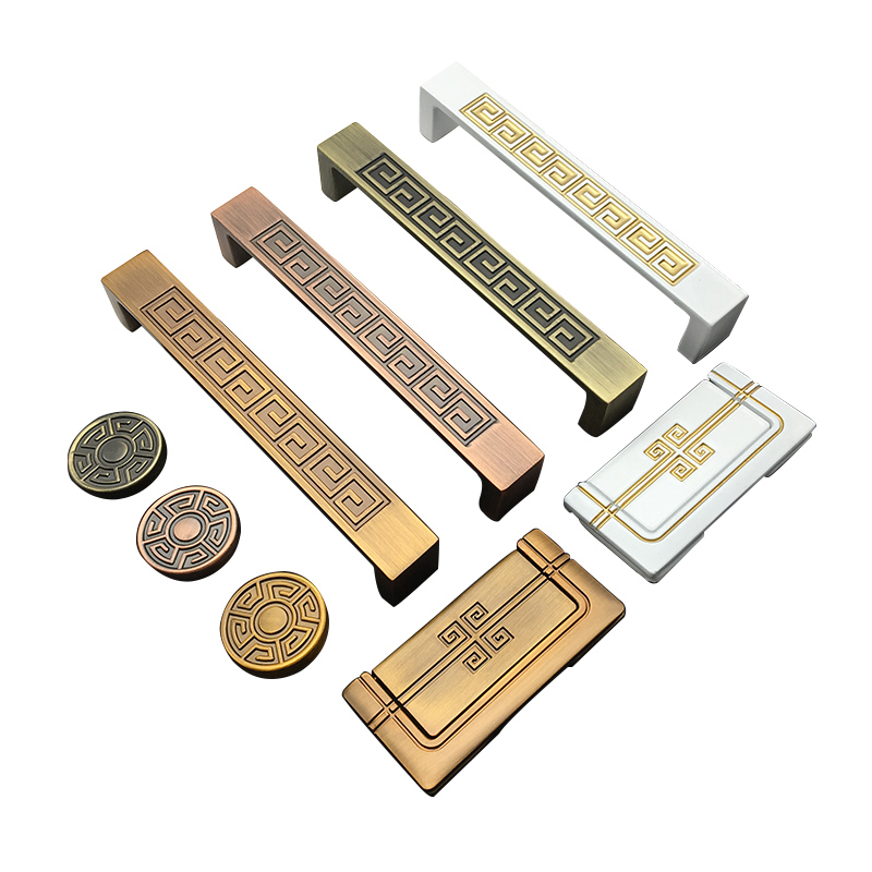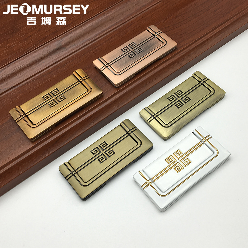 Chinese style wardrobe door handle yellow bronze cabinet handle drawer invisible handle new Chinese style hidden handle single hole handle