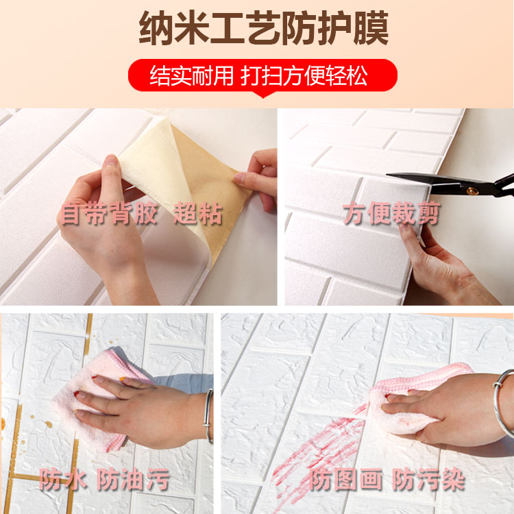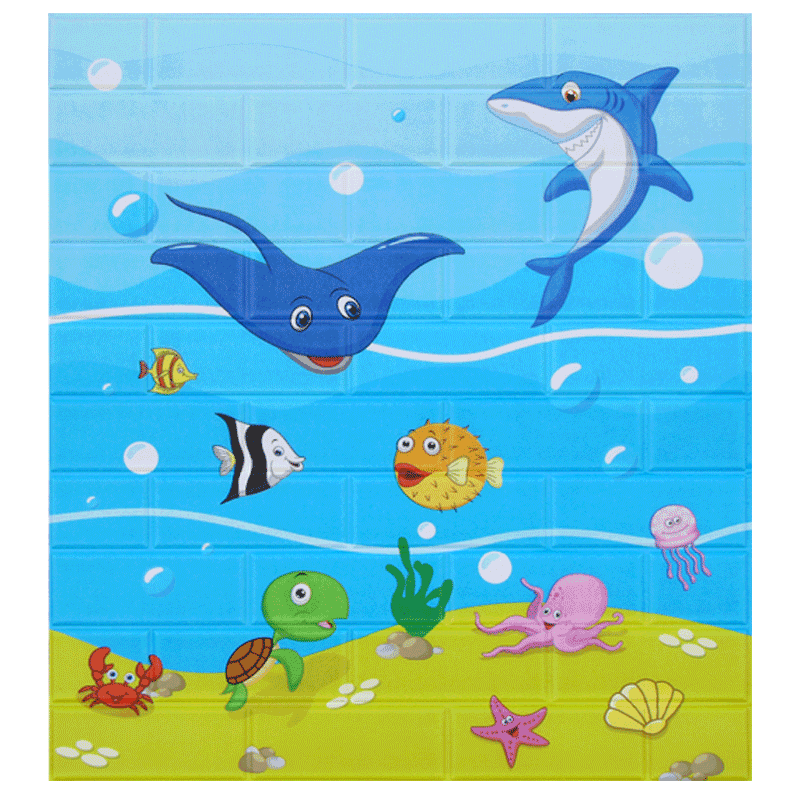 Self-adhesive waterproof 3d stereoscopic wall sticker Children's room Cartoon Kindergarten Wall dress Anti-crash soft bag Bedroom Background Wall decoration