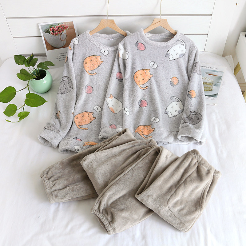 Couple pajamas men and women in winter coral thickening plus warm flannel lovely autumn winter home clothes cover