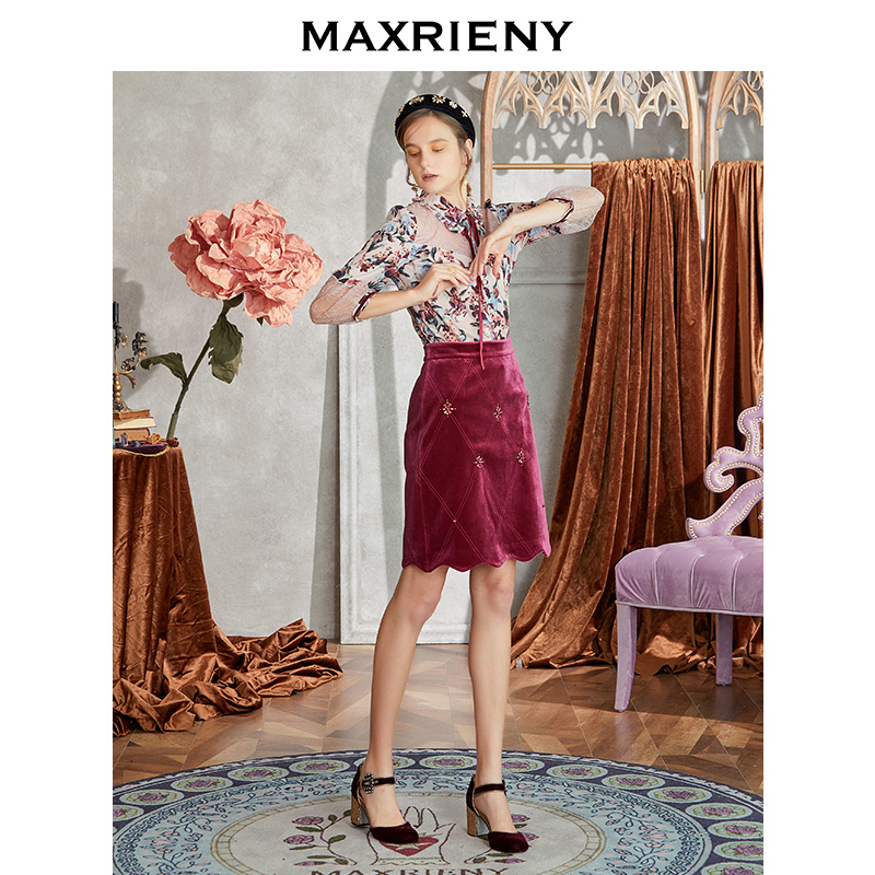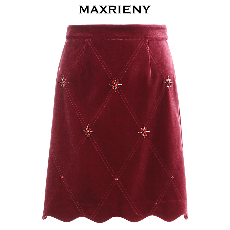 MAXRIENY 2020 autumn new natural waist wave hem temperament red short skirt retro slim hip skirt