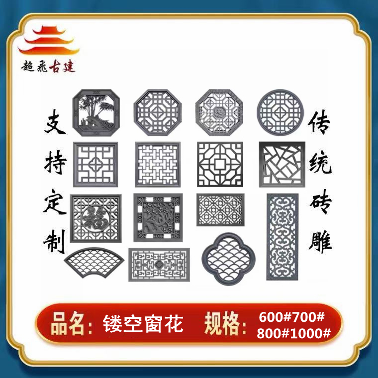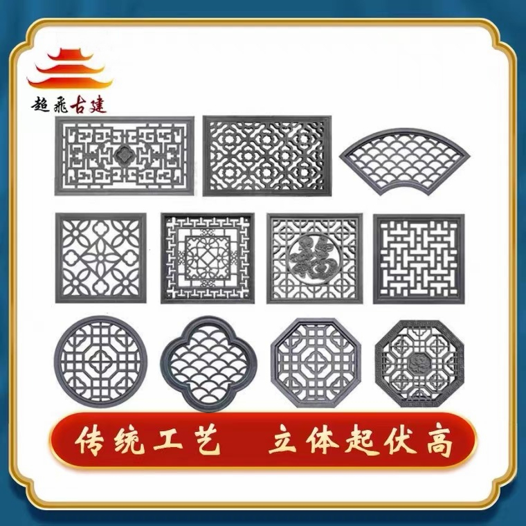 Antique round square octagonal hollowed-out brick carving Chinese style ancient built courtyard window flower brick carved cement flower window decoration hanging decoration