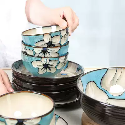 Yuquan Qilixiang dishes tableware set set Korean hand-painted rice bowl soup bowl plate fish plate combination ceramic household