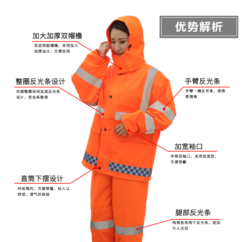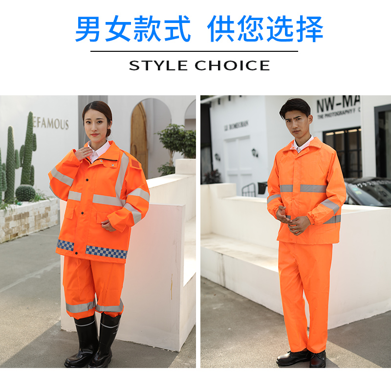 Fluorescent orange sanitation raincoat (both men and women can wear) fluorescent green reflective raincoats (both men and women can wear) fluorescent green raincoats (command of traffic) fluorescent green black pants (command of traffic) fluorescent yellow black pants (command)