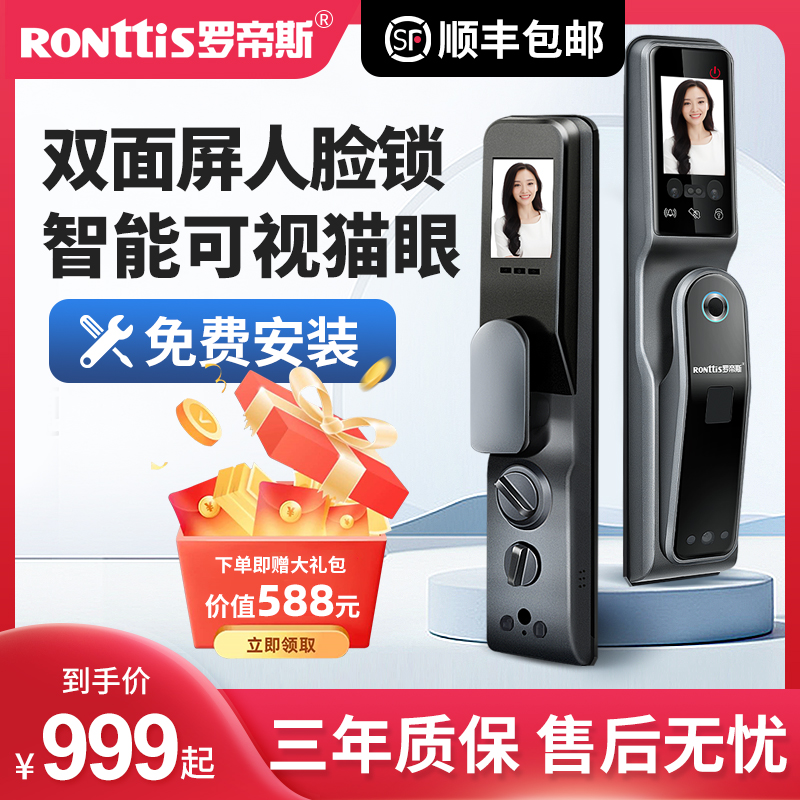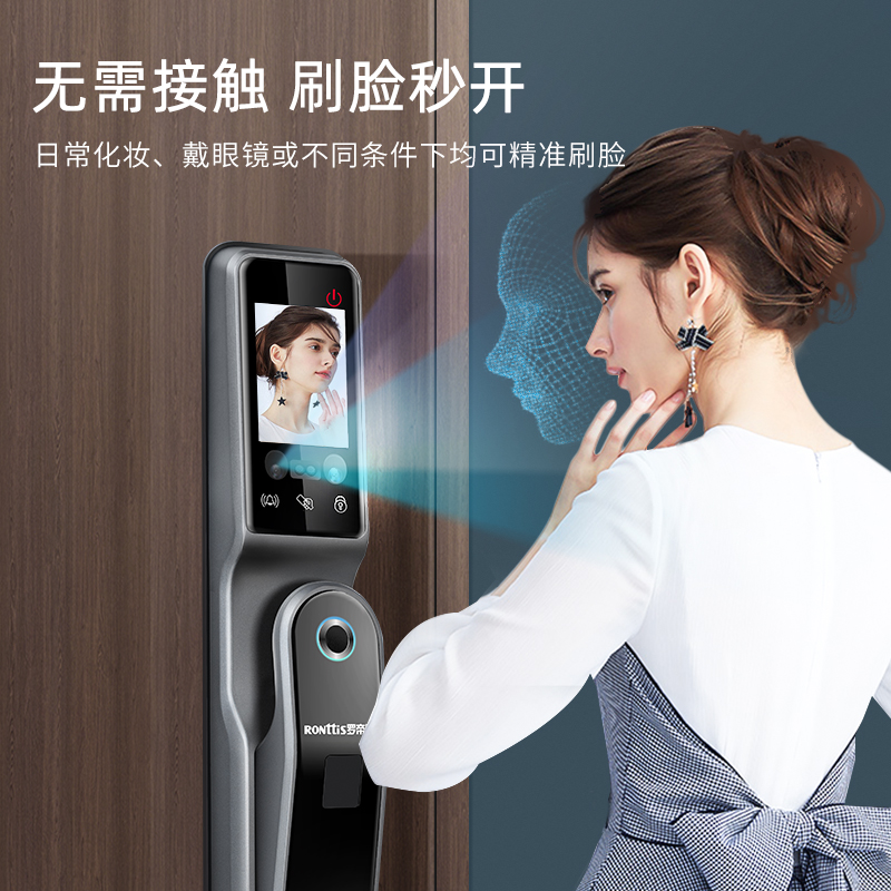 Rodeus fully automatic face recognition smart lock home security door brushed face lock fingerprint lock password door lock