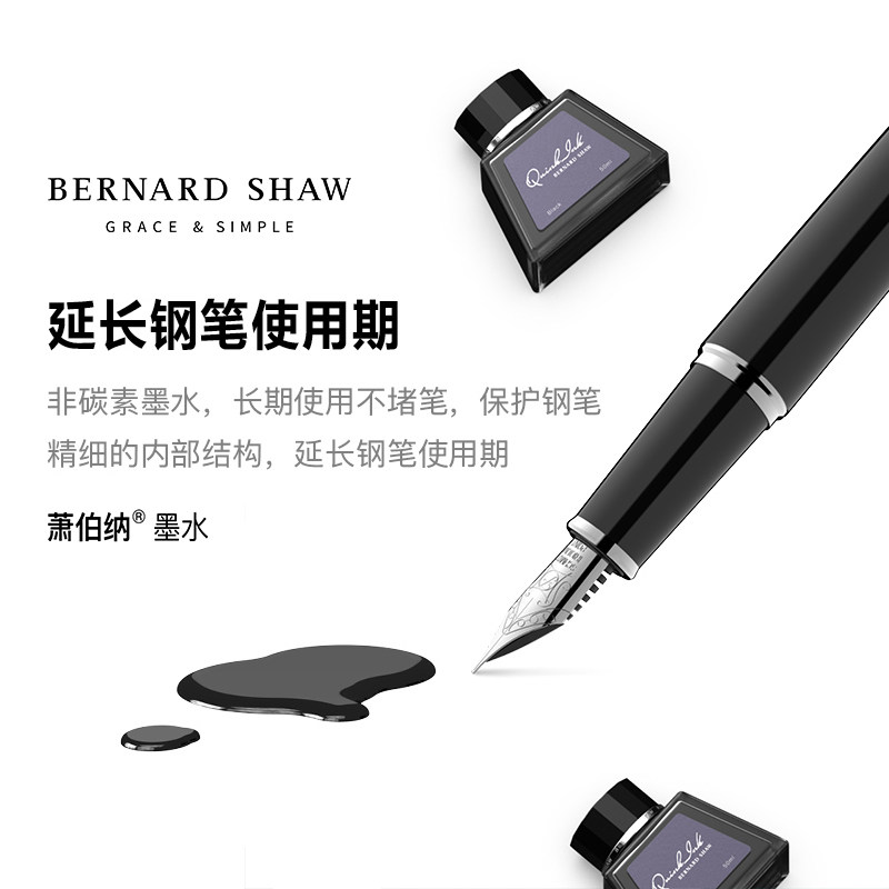 Bernard Shaw pen ink black large-capacity 50ml pyramid bottle non-carbon quick-drying carbon-free non-blocking