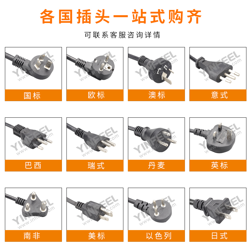 Ogauge Three-core power cord with plug three-foot European standard warmer machine equipment Kettle Character Tail Universal